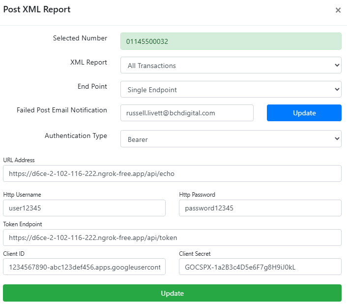 If a POST to an endpoint fails for any reason, an email notification can be sent to an email address.